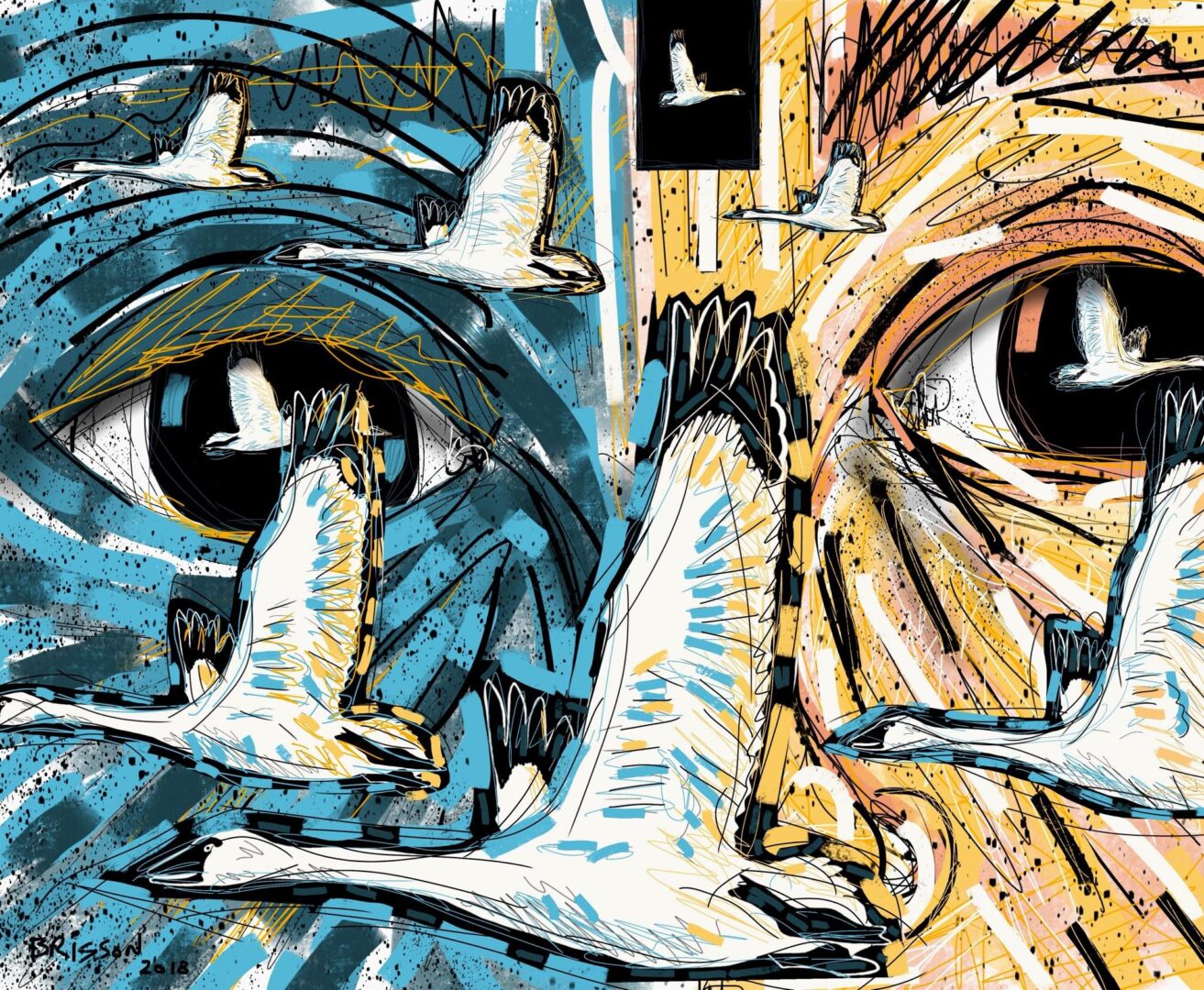 Au fil des dernières années, Frank Brisson intègre l’art numérique à sa pratique. Il conçoit ses œuvres de manière entièrement manuelle sur écran, avant de les produire en tirages limités sur papier d’art pur coton, imprimés avec des encres pigmentées. Cette approche lui permet de créer des œuvres originales qui allient durabilité, finesse d’exécution et accessibilité.