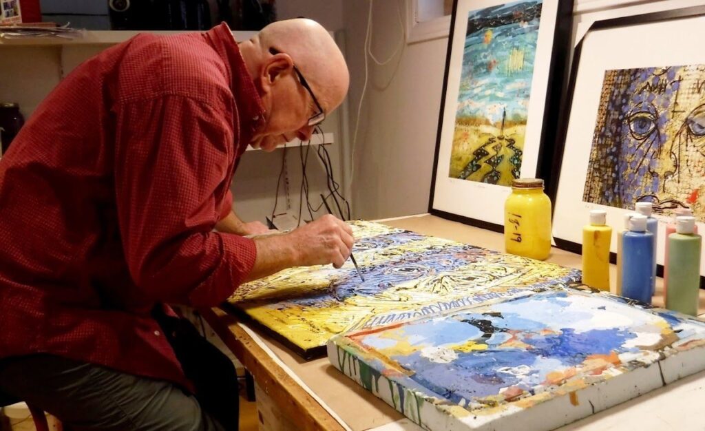 Frank Brisson est un artiste-peintre autodidacte dont la pratique s’est façonnée à travers plusieurs décennies de recherche visuelle. Né en 1949 et formé en enseignement des arts, il cultive une démarche qui traverse divers courants, allant de la bande dessinée aux formes plus sensibles de l’abstraction et de l’expressionnisme. Sa création repose sur une exploration constante des émotions humaines, qu’il traduit par des personnages et des compositions où la présence de l’autre, la réflexion intérieure et la poésie du geste occupent une place centrale.